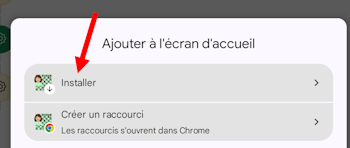 Voici les étapes pour installer l'application à partir de Chrome sur Android (testé sur une tablette Samsung):