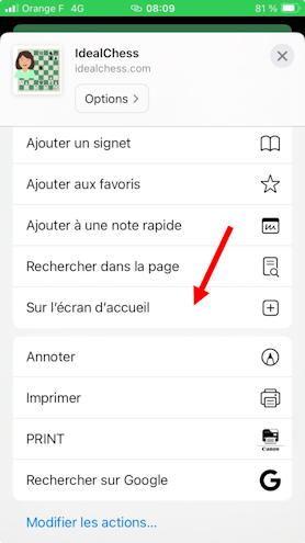 3 - Faire défiler les choix de partage et cliquer sur Sur l'écran d'accueil